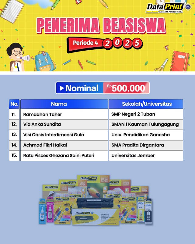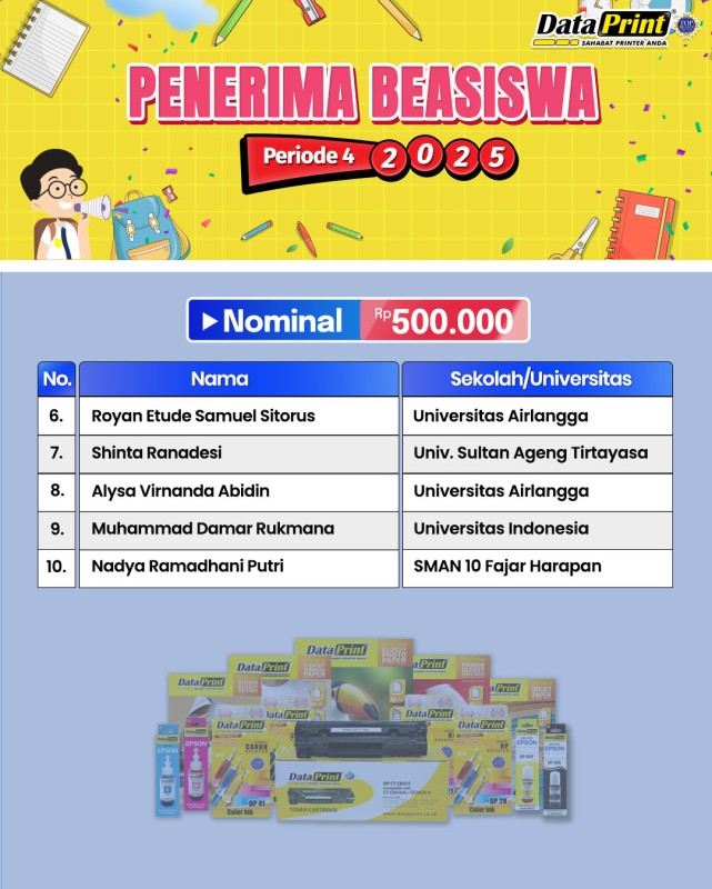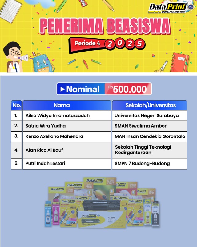 Pengumuman Penerima BEASISWA DataPrint Periode 4 tahun 2025 – nominal Rp 500.000